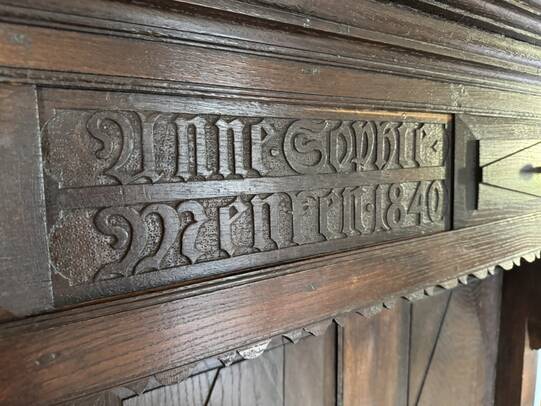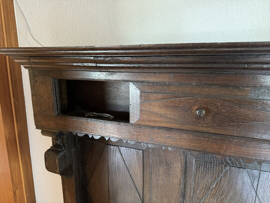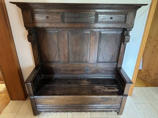 Es handelt sich um ein bzw. zwei zusammengehörige Möbelstücke, die seit ca. 500 Jahren in meiner Familie sind und aus der Nähe von Bielefeld, Evenhausen stammen.