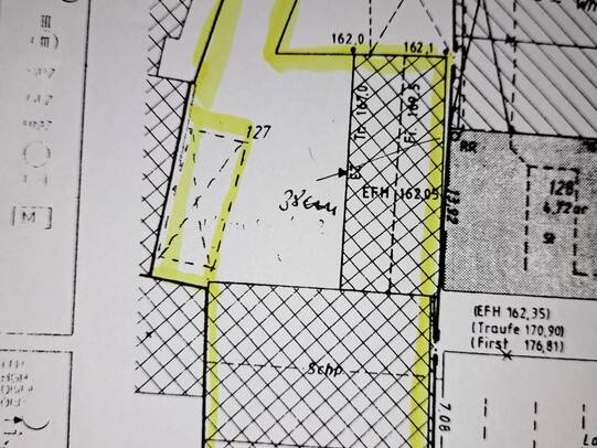 Dieser besteht aus einem Wohnhaus (ca. 60 m² aufgeteilt in 6 Zimmer) und einer Scheune mit Kuhstall und Scheunendurchfahrt. Die Grundstücksfläche beträgt ca. 280 m². Das Grundstück hat eine schmale Zufahrt zur Straße.