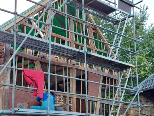 Die IgB-Mitglieder und Bauleute Thea Frohn und Johannes Prickarz (Architekt in der Denkmalpflege) stehen von 11:00 bis 17:00 Uhr für Baustellenbesichtigungen und Gespräche zur Verfügung.