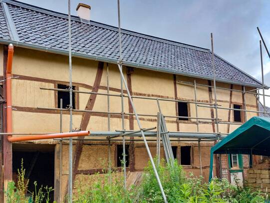 Außerdem befinden sich auf dem Hof ein intakter Brunnen und ein stark instandsetzungsbedürftiger Steinbackofen. Zurzeit finden nach 30 Jahren Leerstand denkmalgerechte Instandsetzungsarbeiten statt. Diese Arbeiten und die hierbei eingesetzten Techniken und Materialien können besichtigt werden.