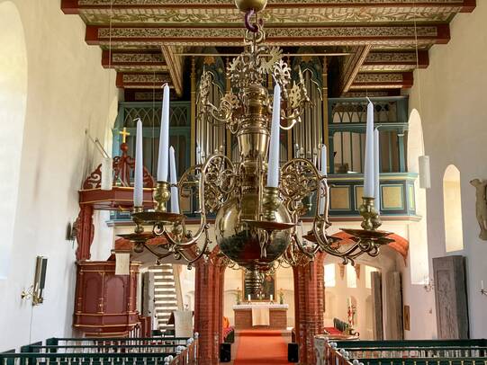 Mittelalterliche Häuptlingsburg aus dem 14. Jahrhundert und die unmittelbar benachbarte St. Marienkirche im Dorf Nesse aus dem 12. Jahrhundert. Beide Gebäude sind von 11:00 bis 16:00 Uhr geöffnet.